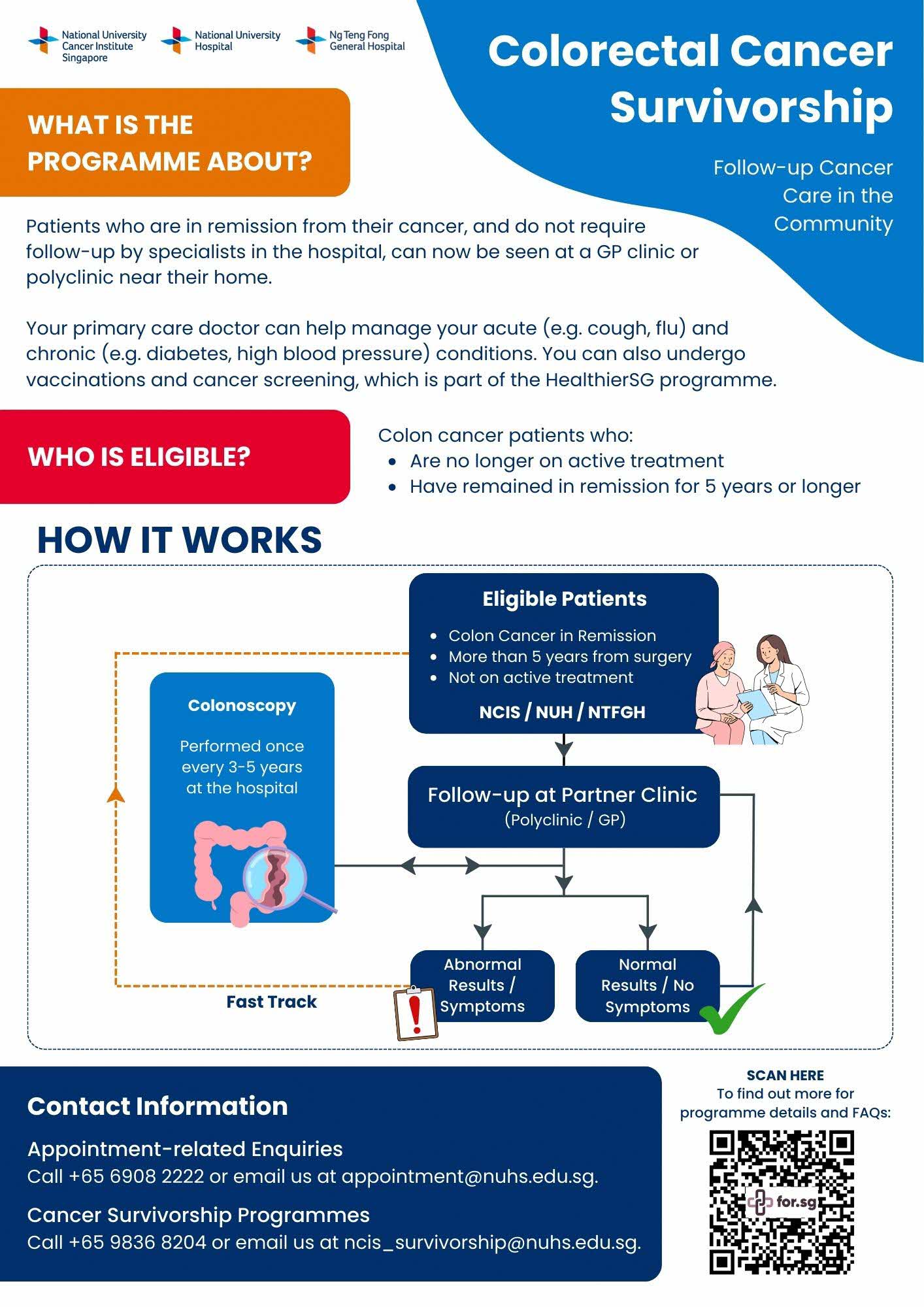 *For eligible colorectal cancer survivors, the discharge will only be piloted in Tampines North and Outram polyclinics for now until further notice.